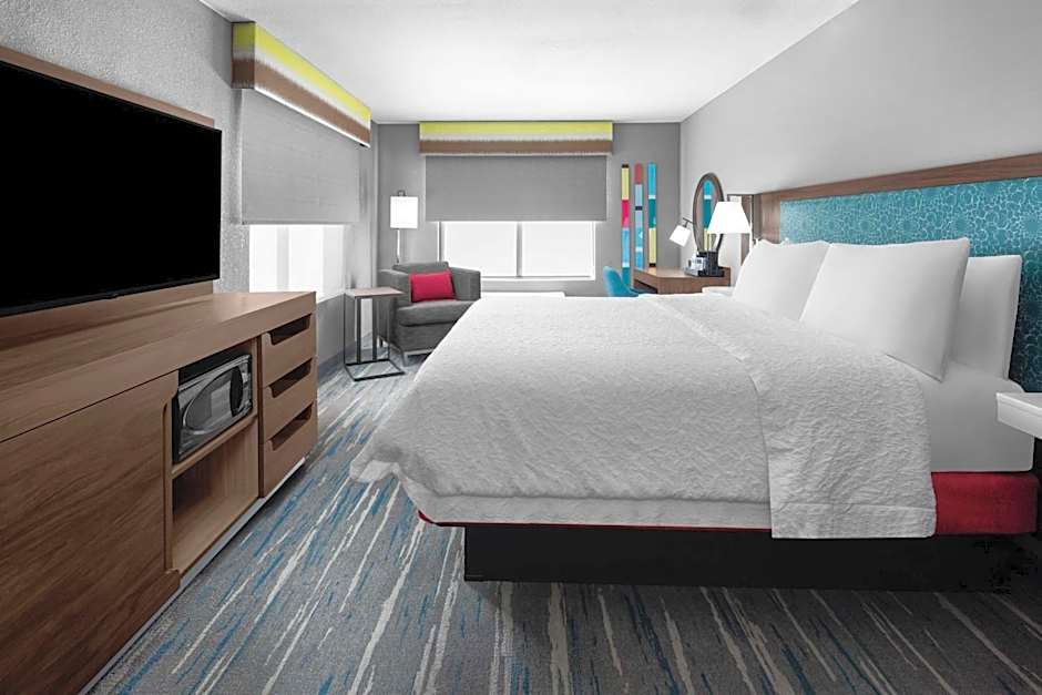 32-inch HDTV, whirlpool, free WiFi, desk, coffeemaker, microwave, refrigerator, sofa bed Unwind in this warm and welcoming room. Relax on the easy chair watching the 32-inch LCD HDTV, catch up on work at the desk, and stay connected with free WiFi. Convenient amenities include a coffeemaker, mini-refrigerator and microwave. The bathroom includes a shower and a relaxing whirlpool tub. This room has one king-sized clean and fresh Hampton bed® and a sofa bed.
